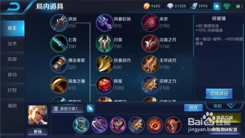 暗影战斧+暴烈之甲+宗师之力+不死鸟之眼+碎星锤(跟之前的破甲弓一样,增添物理穿透)