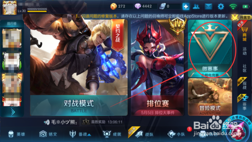 首先,我们打开手机,在手机里打开而且登录王者荣耀,在王者荣耀首页面找到‘微赛事 ’按钮,点击进入微赛事页面 。