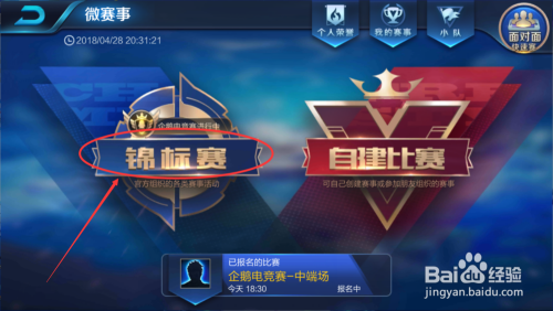 接着,我们在微赛事页面找到‘锦标赛 ’进入按钮,点击进入王者荣耀锦标赛页面 。