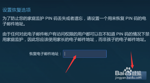 下一步之后来到邮箱确认的界面,这里需要输入一个恢复PIN码的邮箱,输入之后点击确定。