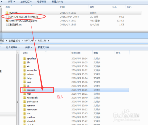 将“MATLAB R2015b license.lic”证书拖入“安装路径盘:/MATLAB/license”文件夹中,并删除“license”文件夹里原有的证书。