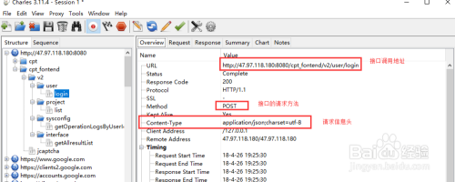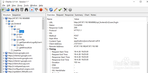 在浏览器中输入你所需的项目路径,并进行操作,这是你会发现,你的操作中的请求会被Charles截取到,如下图所示: