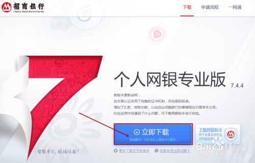 进入到招商银行官方网站-一网通的本家儿页→在官网页面右侧“网上银行”一栏中点击“小我银行专业版”。