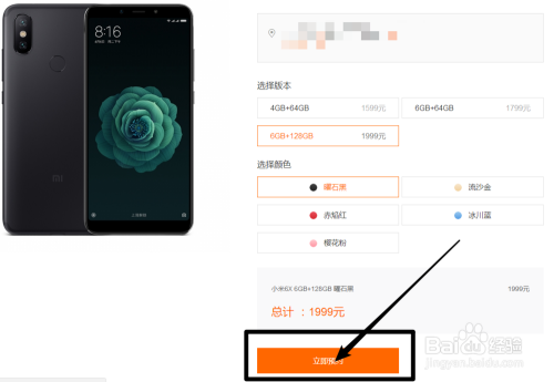 选择我们需要的小米6X设置装备摆设后,我们点击【当即预约】
