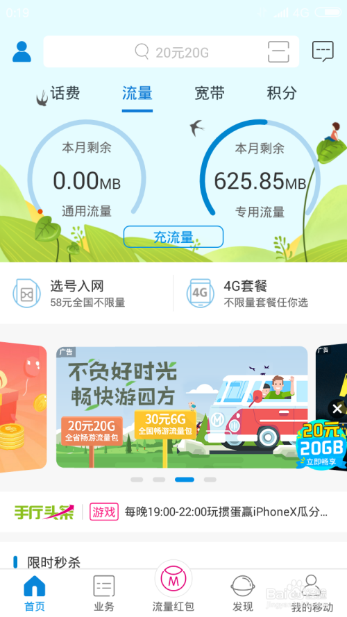 此刻我们把安徽移动APP打开,然后关失落,如图