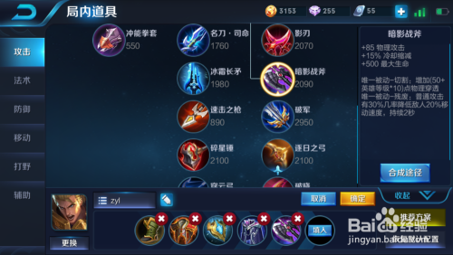 首先先出鞋子,因为亚瑟根基是打上单,对线的一般是弓手之类的英雄,所以这里我保举影忍之足