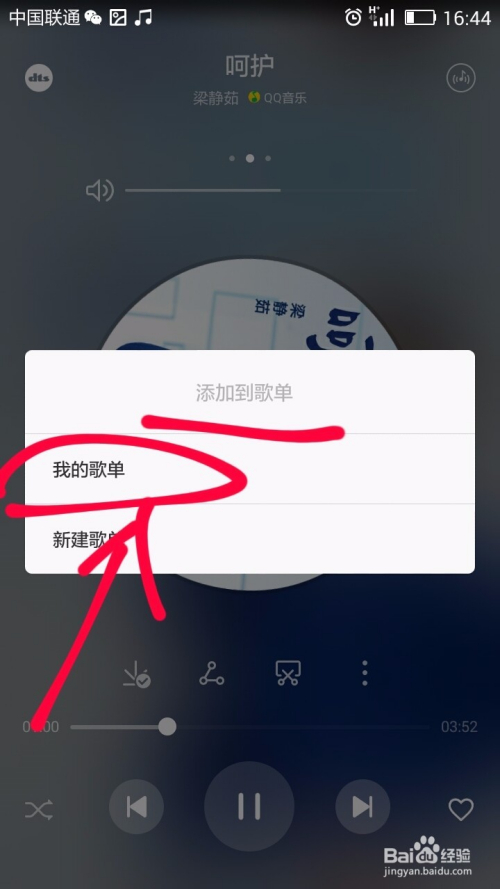 我们这时会在页面中看到添加到歌单的选择框,我们选择我的歌单选项;