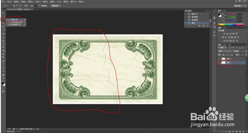 单击【图层1】选中,用白色布景色填充,选中【图层0】;然后选择【套索东西】,在图片上选中一个区域。