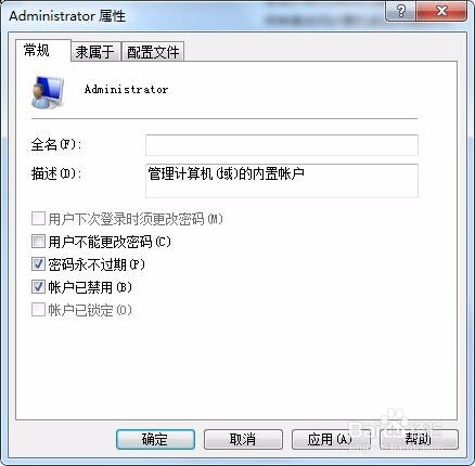 双击了今后可以看到该账号已经被禁用了,打消前面的对勾,点击确认