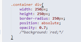 然后我们设置一下 小div 的样式和透明度,经由过程 border-radius这个属性将div变为圆形,初步的结果如图二;(因为设置看定位,所以div都重合了)