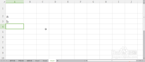 在单位格中输入小写拼音字母“a”或“b”,如图所示
