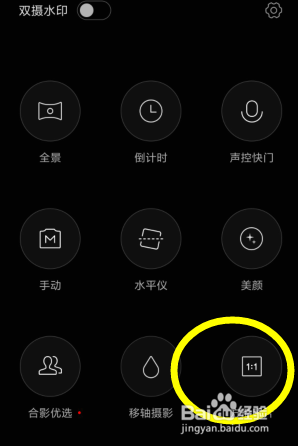 在拍摄选项设置下可以利用方形照片。