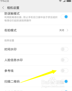 进入到相机设置之后找到相机下的参考线,这里把它封闭点击下即可酿成打开。