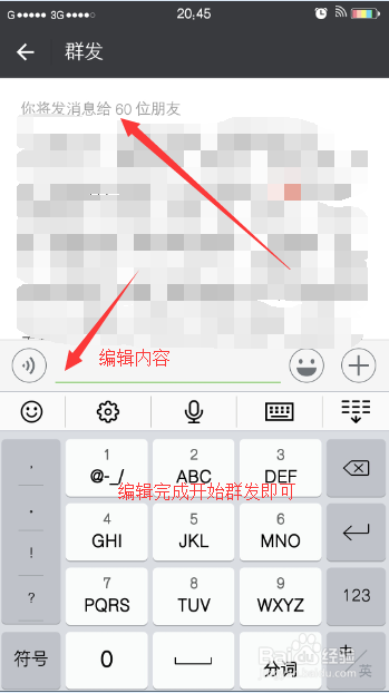 最后一步就是输入需要发送的信息,编纂完当作后点击群发即可,如下图所示。
