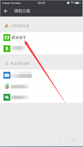 接着在辅助功能中选择群发助手并点击,如下图所示。