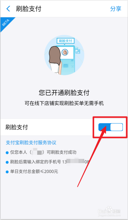 最后我们就开通了付出宝刷脸付出的功能了,当然也可以点击进行封闭