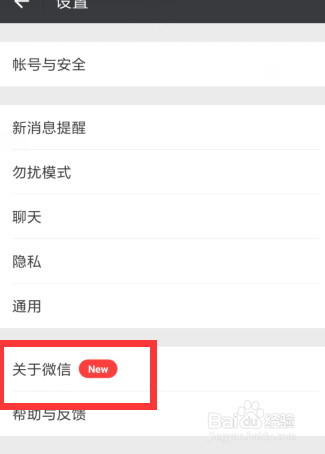 在设置页面下我们可以看到有一个关于微信的按钮,我们按照下图提醒点击关于微信。