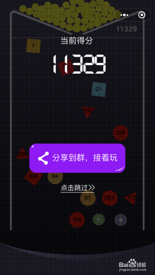 若是你拿到一次高分,这时不小心输了,先别急,点击分享是可以续命的,续命后又可以继续哈皮了