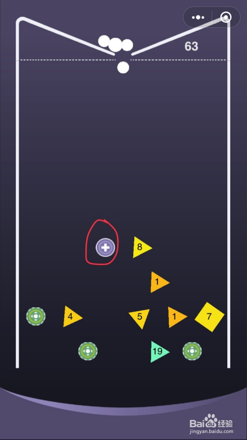 标识表记标帜为加号的绿圆圈打中后可以增添小球的数目,尽早击打它。