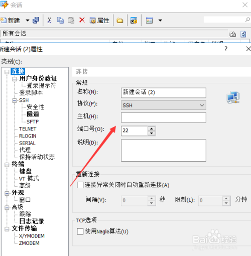 我们点击新建会话窗口新建一个会话,这里输入我们的办事器地址。