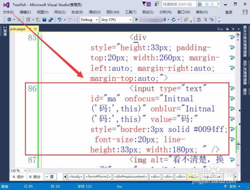 接着,界说输入验证码的文本框,用input属性设置。