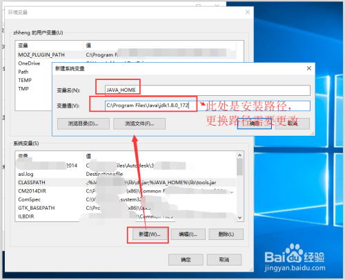 7. 在【情况变量】面板中点击【新建】->【新建系统变量】(变量名是JAVA_HOME,变量值是安装路径)->确定。如下图所示。