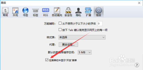 在高级设置的选项卡里直接将下面的【在菜单栏中显示开辟菜单】勾选中,如下图所示。