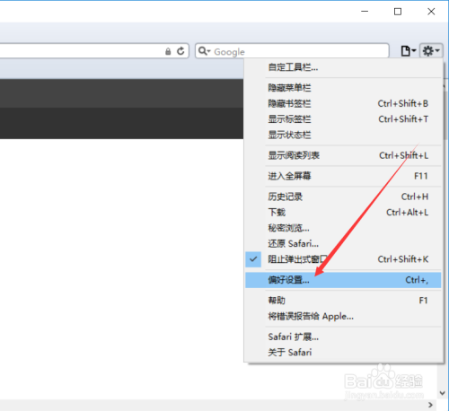 在弹出的下拉菜单里直接点击【偏好设置】选项,如下图所示。
