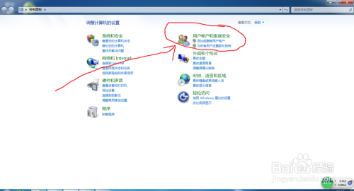 点击起头后打开节制面板,选择打开用户账户和家庭平安。