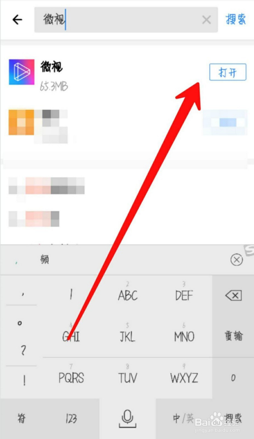 首先,我们需要前去应用商铺下载一个【微视】软件,下载完当作之后点击【打开】。