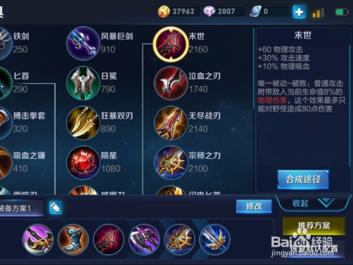 2、裴擒虎的装备保举为巡狩利斧+急速战靴+季世+暗影战斧+宗师之力+破军。
