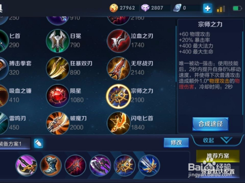 6、宗师之力可以提高暴击率和技术后的普攻危险,是增强裴擒虎进犯结果的最好装备。
