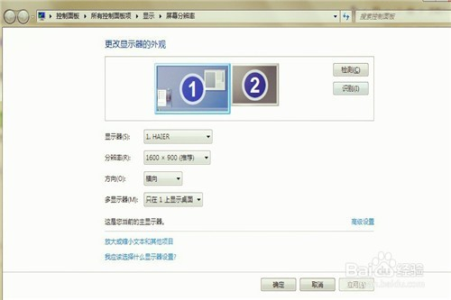 在屏幕分辩率的页面,找到高级设置的选项,然后点击进入。