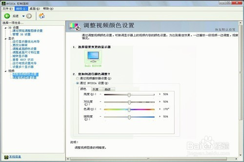 进入之后,鄙人面的调整视频颜色设置里面,将亮度,对比度,色调,饱和度别离调整为78,55,11,35。色调若是调不到11的话,12或者14都可以。