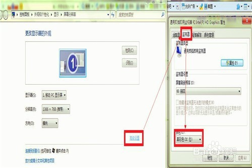 高级设置选项下,在上方使命栏选择监督器,鄙人面的颜色重,选择加强色(16位),若是对游戏要求不是很高,如许点窜一下就可以了。