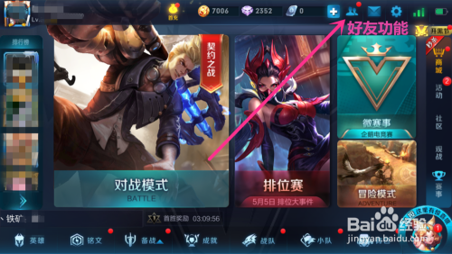 进入王者荣耀游戏本家儿页面后,点击页面右上角老友功能,如图所示
