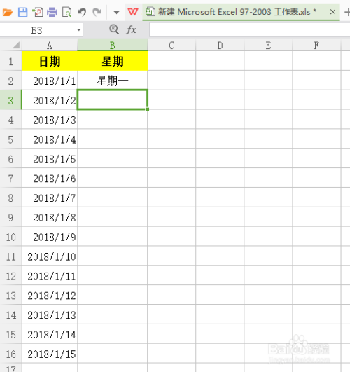 按回车即可,若是要将表中全数的日期转换当作礼拜,则可以在第一个转换礼拜的单位格即B2单位格的右下角,用鼠标拖动到需要转换的位置即可。如图