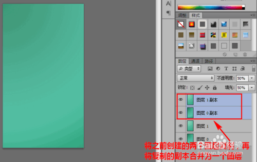 将之前建立的两个图层复制,再将复制的副本图层归并为一个图层。