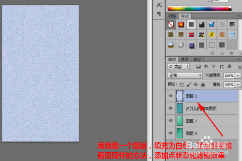 随后,再次新建一个图层,将其填充为白色,然后利用和前面同样的方式,添加点状化滤镜结果。