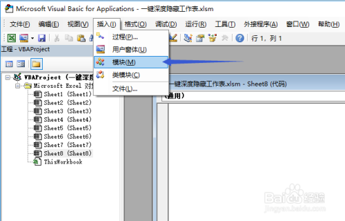以下列数据为例,对某些工作表进行深度埋没,如sheet 8.