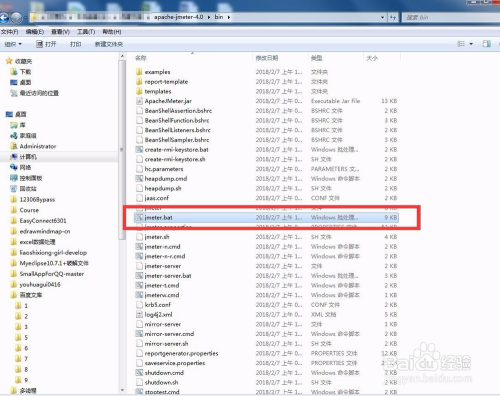 然后在系统中找到bin目次,然后再找到bin目次下的jmeter.bat,双击运行
