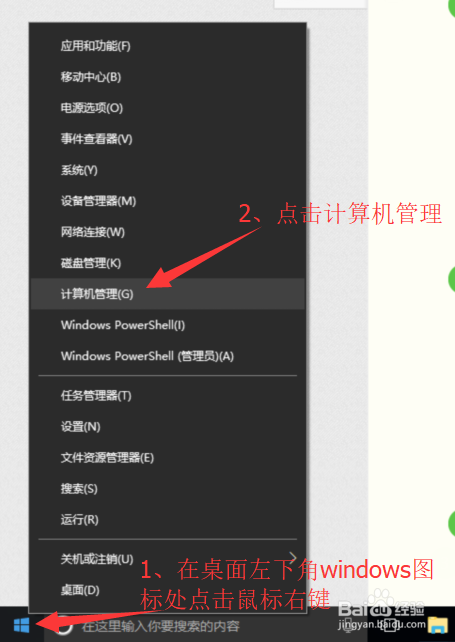 进入系统桌面后将鼠标移至左下角windows图标处点右键,然后选择【计较机办理】