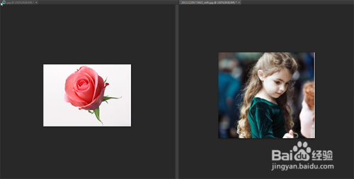 如图,在PS中打开两张图片,如下图所示。