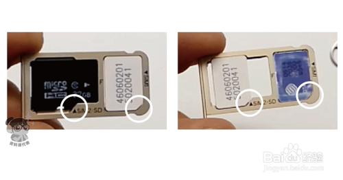 将 Nano-SIM 卡和 MicroSD 卡别离按示意偏向放入卡托,注重缺口的偏向。