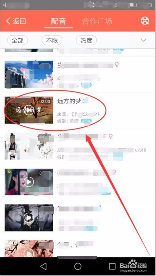 配音窗口中,选择一段本身喜好的配音视频。