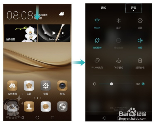 从状况栏处标的目的下滑动,打开通知面板,切换到【开关】页签,常见的耗电年夜户,好比WLAN、蓝牙、移动数据等,都可以在这个处所快速封闭。