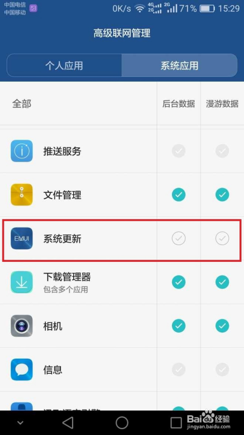 然后点击【系统更新】后面的后台数据和漫游数据并将其封闭。