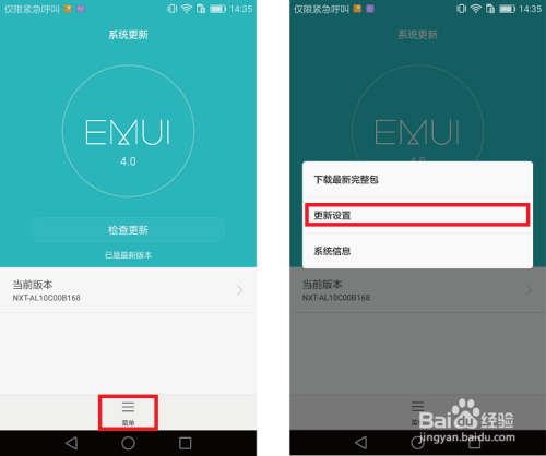 点击屏幕下方的【菜单】,并点击【更新设置】。