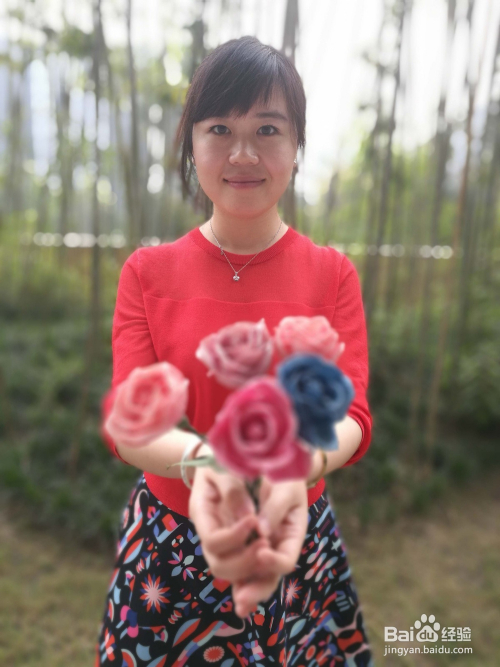 年夜光圈结果1:以美男的脸部为中间对焦,虚化布景和她手里的花。