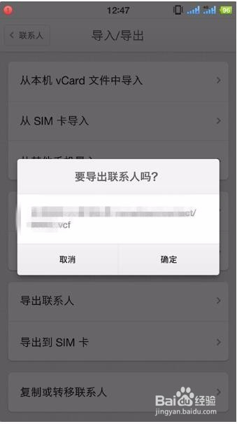 系统会提醒需要导出吗,然后生当作一个.vcf的文件,点击确定